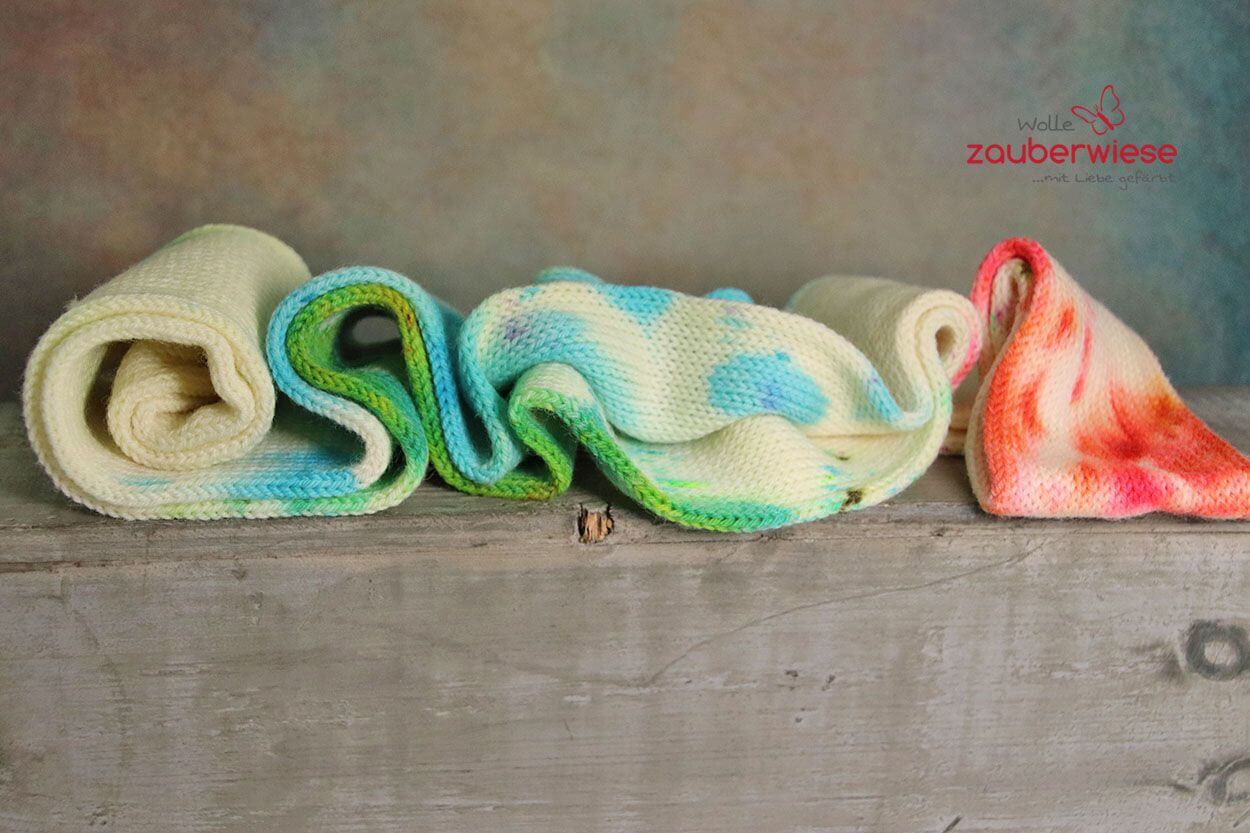 beim Tuch wird ein wilder Farbverlauf herauskommen, viel Spaß damit!