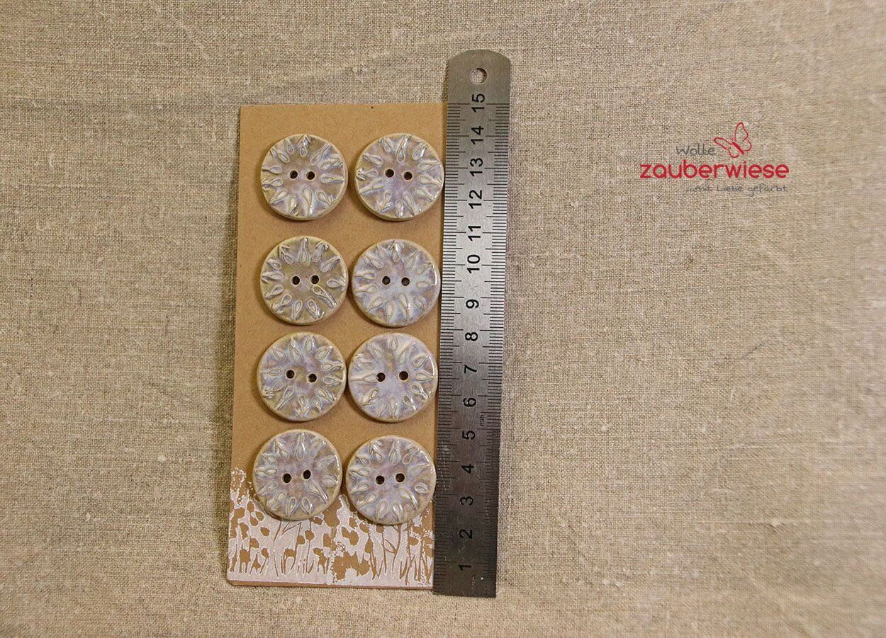 Die Keramikknöpfe sind robust, schlagfest und waschmaschinengeeignet, auch bei höheren Temperaturen. Wir empfehlen,